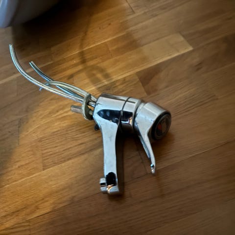 Käyttämätön hana hienoilla kultaisilla yksityis kohdilla . Ala puolen kiinnitys mutteri puuttuu.