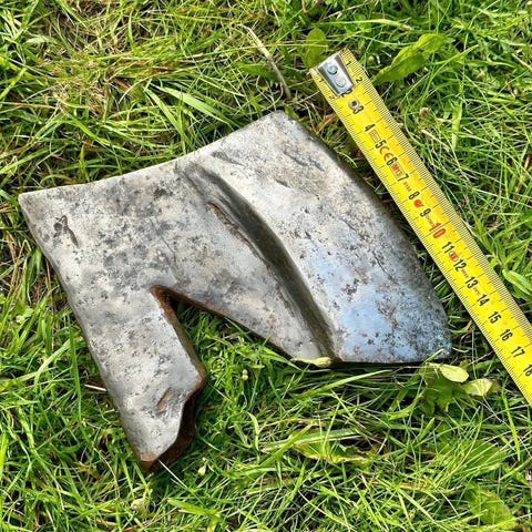 Sepän takoma kourukirves varauksen viimeistelyyn.