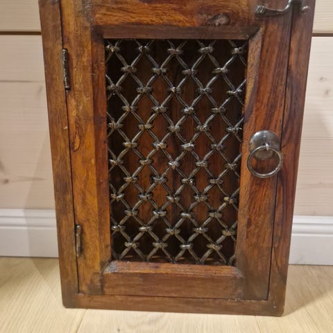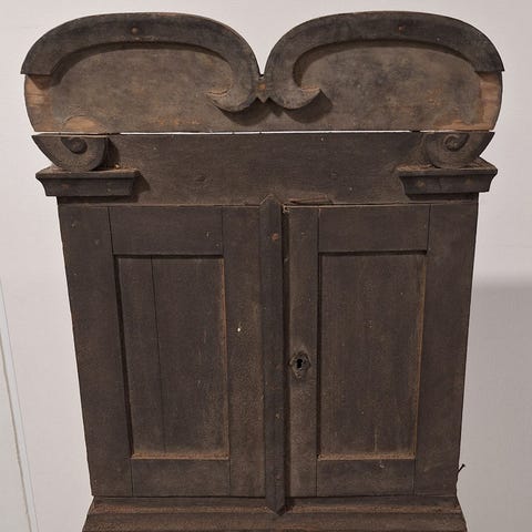 Vanha käsinmaalattu antiikki avainkaappi. Sisällä kolme naulaa avainten ripustamiseen.