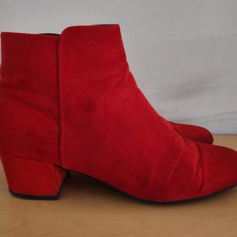 Tekonahkaa, pikkuisen päällys on kuoriutunut kengän reunasta eikä näy käytössä, vielä hyvät kengät seuraavalle.