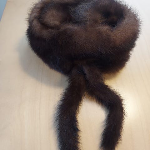 Minkkiturkkia lyhennetty ja siitä teetetty hattu. Erittäin siisti, koko n. 54-56.