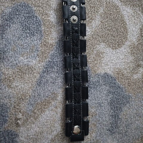 Käsityönä tehtyjä, nahkaisia rannekkeita.