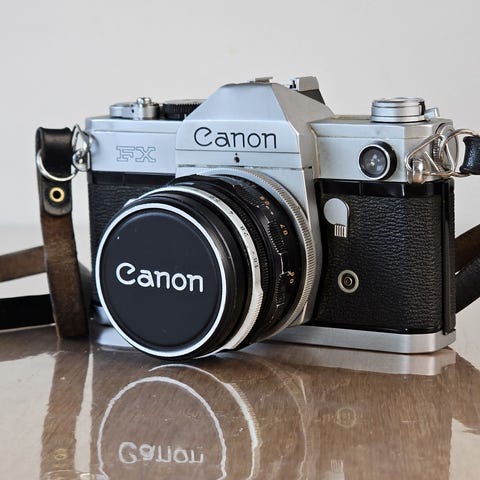 Canon EF kamera. Ollut käyttämättömänä vuosia koska siirtyminen digikameroihin. (Rungon numero 322614). Objektiivien kiinnitys systeemi FD SRL. Objektiivit: Tamron 70-210 mm sisältää Macron 1:3.8-4. + kova erillinen kotelo. Canon EF 28mm 1:2.8 S.C. ja kova kotelo. Canon FD 50mm 1:1.8 S:C. Canon filter 55mm screv-in type , skylight 1x. Objektiivien sivu-vastavalo suojukset. Lisätietoina: Suljin 1/2s - 1/1000s + B (mekaaninen) ja 1s - 30s (elektroninen) ISO-alue: 12-3200. Koko: 147 x 96 x 48 mm. Paino: 760g.