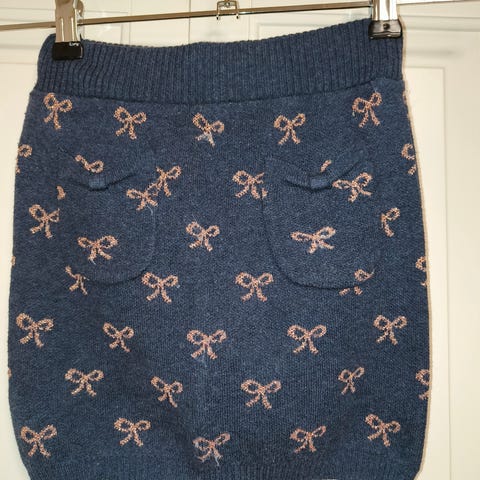Myydään DIY tyttöjen tummansininen vekkihame. Kokoarvio 128+. Vyötärö joustaa ja siinä nepparikiinnitys. Helman pituus 41cm.