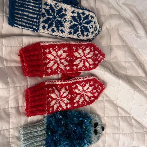 Jämälangoista syntyi pirtsakat ja värikkäät lapaset. Aikuiselle tai nuorelle. Mitat näkyvät.