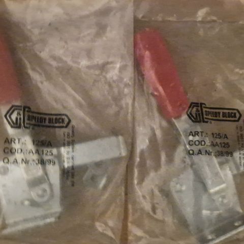 Tarjolla 2kpl uusia avaamattomassa pakkauksessa olevia DE-STA-CO Model 331 -pikakiinnittimiä. Laadukas saksalainen lukitusvipu, joka soveltuu konepajatyöhön, kiinnitystelineisiin ja puristimiin yms.
