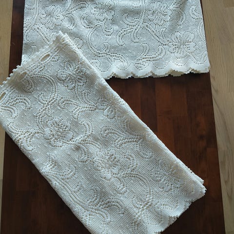 Myydään käytössä ollut vaalea verho. Sanotaanko tätä nyt vaikka " pitsiverhoksi".