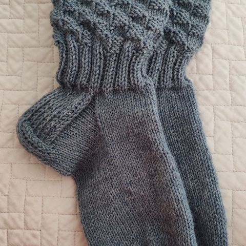 Novita Nalle-langasta neulotut oranssi-mustat villasukat, koko n.38. Pohjan pituus 24,5cm, varren pituus 13cm.