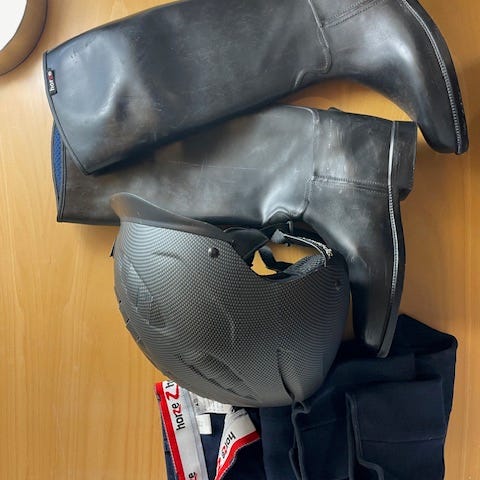 Myydään silinteri, merkki Horka, koko 55. Ollut alunperin kilparatsastuskäytössä (nykyään lajissa on käytössä kypärä).