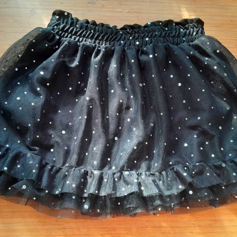 Myydään röyhelöhelmainen hame. Lotta&Lassi. Kokomerkintä 122. Nimikoitu. Helman pituus 30,5cm.