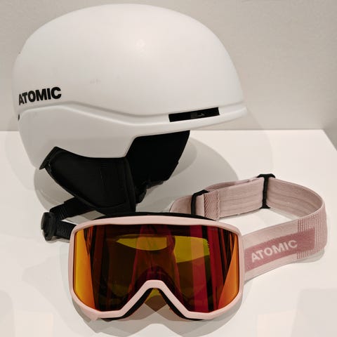 Vähän käytetty ja siisti Atomic FOUR JR pinkki kypärä.