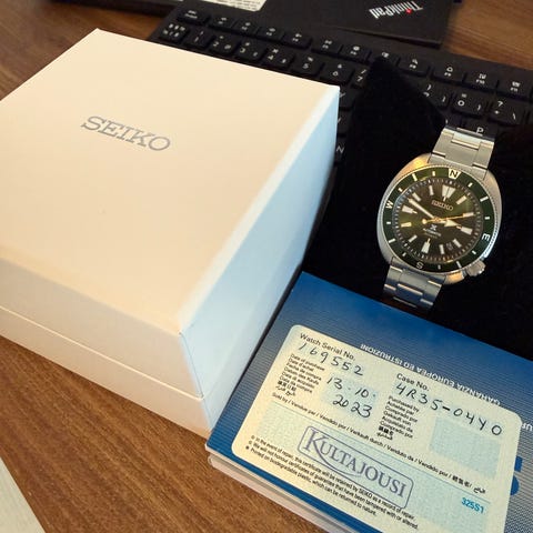 Siisti käytetty Seiko suraavaan ranteeseen, melkein kuin pakasta vedetty. Ei pintanaarmuja lasissa tai päällyksessä (tavallisilla silmillä katsottuna).