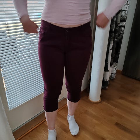 Uuttavastaavat naisten housut 7/8 osaa/caprit koko 42,Papaya.Farkkukangasta.Nouto tai toridiili.