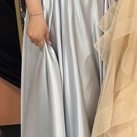 Kaunis olkaimeton vaaleansininen kimalteleva (glitter) vanhojentanssimekko. Ostettu Mecco-myymälästä ja käytetty vuoden 2025 vanhojentansseissa. Mekon mittoja voi kysellä, mutta nyörityksen ansiosta se mahtuu noin 32-38 kokoisille ja on sopiva noin 160-162cm pituiselle. Sisältää Bianco Evento H26 tyllialushameen kokoa s.