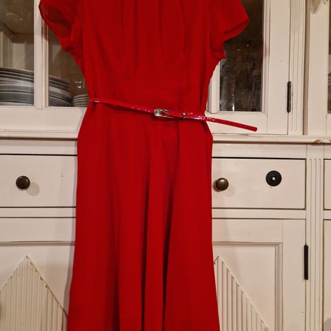 Kissakuvioinen lyhyt mekko. Vetoketju sivussa. Mekon sivussa on värivirheitä. Kainalo-Kainalo 40cm ja olka-helma 82cm