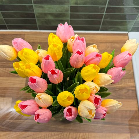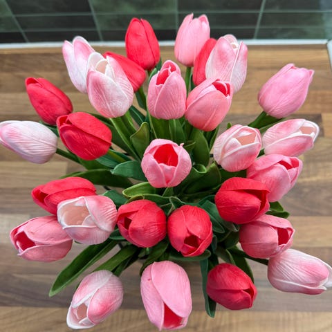 Punainen tulppaani-puukukkakoriste. Erittäin kaunis koriste-esine.