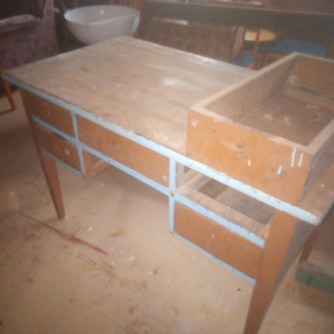 Pöytä on vasta puhdistettu ja vahattu uudelleen.