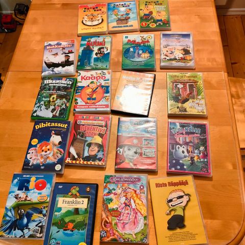 Myydään settinä 13kpl lasten DVD-levyjä. Viiru&Pesonen kolmen levyn sarjasta yksi levy kadonnut.