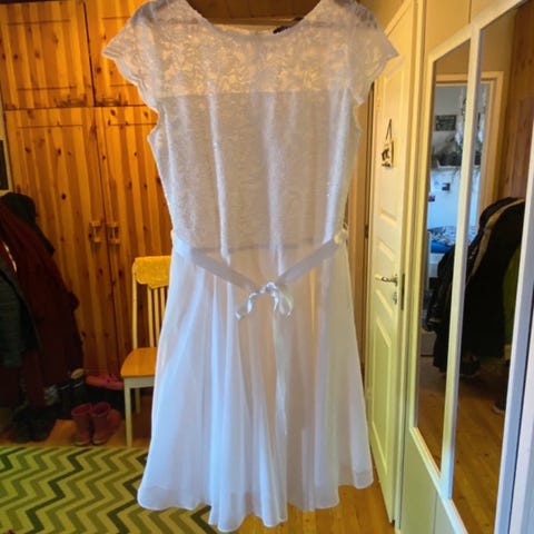 Upea vaaleansininen rippimekko. Tämä oli itselläni kerran päällä omissa konfirmaatiojuhlissa. Ostettu Carlsonin yläkerrasta halosen liikkeestä. Mekossa on todella kivoja yksityiskohtia ja takaa löytyy kiristysnauhat. Tästä jollekkin valmiiksi rippimekko hyvällä hinnalla!