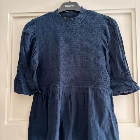 Sinikukkainen, käyttämätön. Mitat: kai-kai 52 cm, hiha 46 cm, takaa pituus 64 cm. Pkt 7 €.