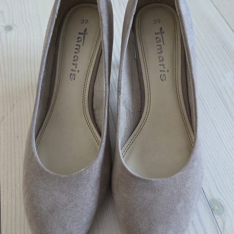 Tamariksen pehmeää nahkaa olevat kävelykengät kiilapohjalla. Nahassa pieniä kuluma jälkiä. Koko 39 korko 7,5 cm. Pehmustettu päkiä.