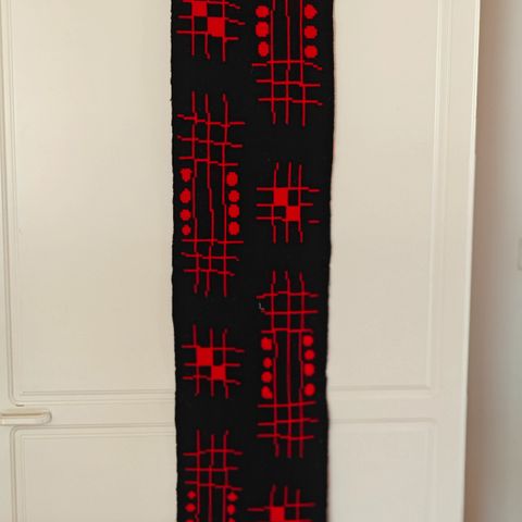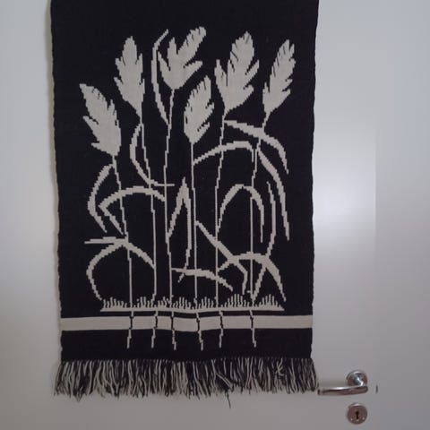 Käsintehty täkänä, jossa on ruskea pohjaväri ja koristeellinen kuviointi. täkänä on valmistettu villasta ja sen koko on noin 70x200 cm. Soveltuu käytettäväksi esimerkiksi olohuoneessa tai makuuhuoneessa tai koristeena.