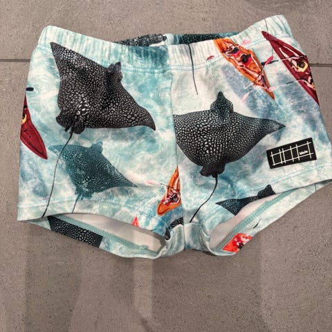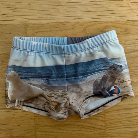Todella vähän käytössä olleet uimahousut pienelle pojalle. Ihana norppa-aiheinen kuvio. Näissä on sisävuori vahinkoja varten. Meillä oli pottasiistillä pojalla.