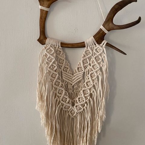 Myydään siniharmaa Macrame seinävaate koristeeksi. Koko 87cmx64cm.En postita.