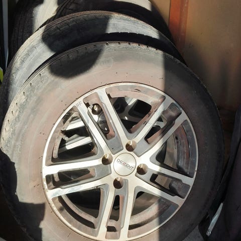 Myyntiin Renault Lagunassa olleet kesärenkaat. Mukana vararengas.