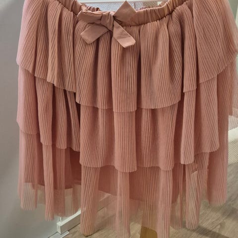 Hempeän värinen tylli/harsohame, hopeinen pallokuviointi.