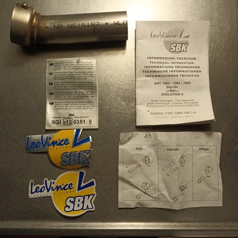 Tosi siistikuntoinen (kuvissa likainen) cebarin vakioputkistoa, tästä sopivasti jos ei vakiota ole tallessa ja pyörässä laiton putki kiinni. Jäänyt ylimääräiseksi, kuten jakoketjun kiristinkin, josta myös ilmoitus.