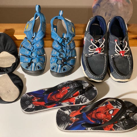 Poikien kesäkengät ovat kokoa 34. Lapselle uutena ostetut kengät ovat vielä suht hyväkuntoiset, sillä ne olivat käytössä vain yhtenä kesänä: