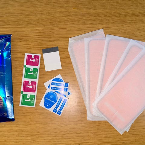 • Sisältää pyyhkeet näytön puhdistusta ja kalvon asennusta varten