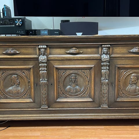 Myydään iso painava rokokoo-senkki. Leveys 210 cm, syvyys 46 cm ja korkeus 140 cm. Ei saa purettua osiin. Vain nouto omilla kantajilla Röykästä Nurmijärveltä