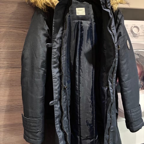 Sininen pantterikuvioinen pehmeä toppatakki. Koko uk 16s, eli taitaa olla L(?). Kuvissa näkyy kokolappu.