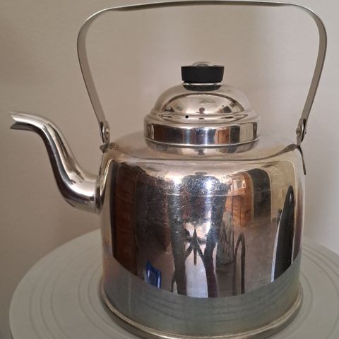 Vintage Bodum Ottoni - leikkisän tyylikäs vedenkeitin, Carsten Jørgensen suunnitelema 1986, edustaa postmodernismia. Kiiltävä teräspinta, puukahva. Käytetty, mutta hyvässä kunnossa.