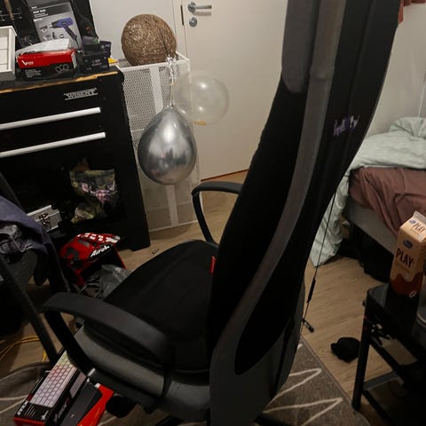 Pyörii ja rullaa, säädettävä istuinkorkeus. Ollut lastenhuoneessa, sopii mielestäni myös aikuiselle. Alunperin muistaakseni pinkki, maalattu valkoiseksi.