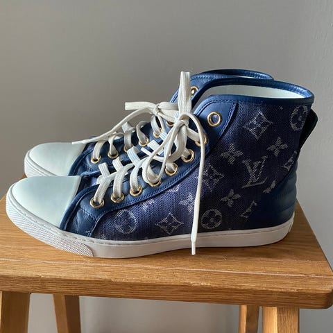 Syksyyn hienot Vuittonin kengät. Koko 39,5. Sisämitta mitta n. 26cm. Jonninverran käytetty ja tallattu, mutta ehjät ja siistit. Toisen kengän nauhan olen jotenkin onnistunut katkomaan joten solmittu, mutta eteenpäin vie ja uudet ei paljon kustanna. Ostettu jo vuosia sitten eli kuitit ja laatikko kadonnut johkin, mutta aidot. Postit lisätään tai nouto jämsä.