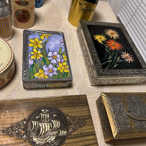 Hakusanat: 80-luku 90-luku ainutlaatuinen ajaton antiikki boheemi boho chic cottagecore design eklektinen elegantti englanti harvinainen herkkä hienostunut historiallinen kangas kaunis keltaienn keräily keräilyharvinaisuus keräilykohde keräilyrasia klassinen kong koriste koristeellinen kukkakuosi kukkakuvio kukkapurkki kukkasin kullanvärinen kulta kuvioitu laatikko laatikkomainen lahja lahjaidea laite leima lempeä luonnonläheinen luonto maalaisromanttinen metallinen metallirasia musta nostalginen ompelurasia ompelutarvike ompelutarvikkeet ompeluun pastelli pastelliväri pehmeä pehmeät pelti peltipurkki peltirasia perinteinen pilleripurkki pillerirasia pinkki posliini posliininen pyöreä raidallinen rare retro romanttinen ruusukuosi ruusukuvio ruusullinen ruusupurkki ruusurasia sametti samettinen shabby sielukas sininen sisustus sisustuselementti sisustusidea sisustustavara style suloistava sydän sydänmuotoinen säilytys säilytyslaatikko säilytysrasia sävy sävyt taide taiteellinen trendikäs tumma tyyli uniikki upea vaaleanpunainen valkoinen vanhanaikainen vihreä vinyyli y2k yksityiskohtainen ylellinen yllättävä