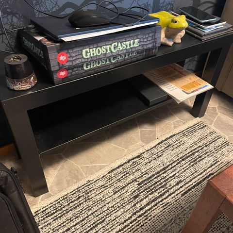 Sirokokoinen valkoinen sohvapöytä, leveys/syvyys 65/45 cm, korkeus 52cm.