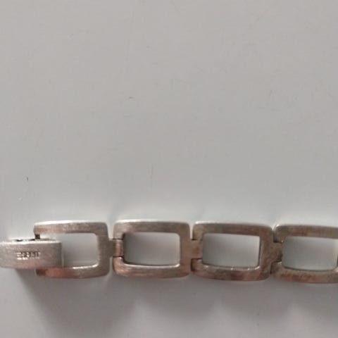 Hopeinen näyttävä ranneketju, pituus 20,5 cm, leveys 1,2 cm, paino 34 g. Leima 925. Erittäin siistikuntoinen.