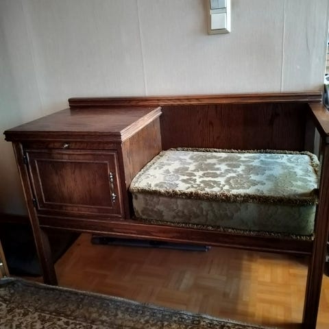 Hieno tyylihuonekalu, kahdenistuttava sohva/penkki.