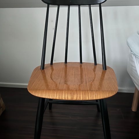 Myydään koristeena ollut Askon Fanett- pinnatuoli. Muutama jälki, joista kuvat, muuten alkuperäisessä erittäin hyvässä kunnossa.