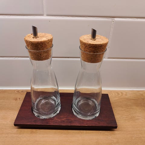 Myydään tarjoilusetti, jossa suola- ja pippurisirotin sekä öljy- ja etikkapullo. Ostettu yli 20 vuotta sitten Espanjasta, mutta olleet paketissa varastossa käyttämättöminä.