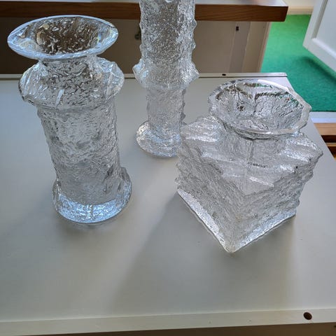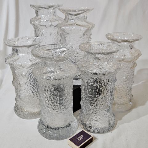 Myydään 5 kpl k. n. 23 cm, suuaukko n. 11,5 cm. Osa TS signeeratut Timo Sarpaneva Crocus maljakot.