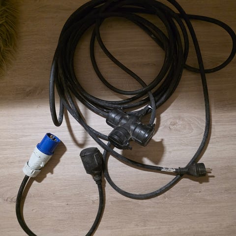 Karavaani kaapeleita 2 kpl 10 metrisiä. Lisäksi löytyy 2 kpl adaptereita normi töpselistä karavaani kaapelille.