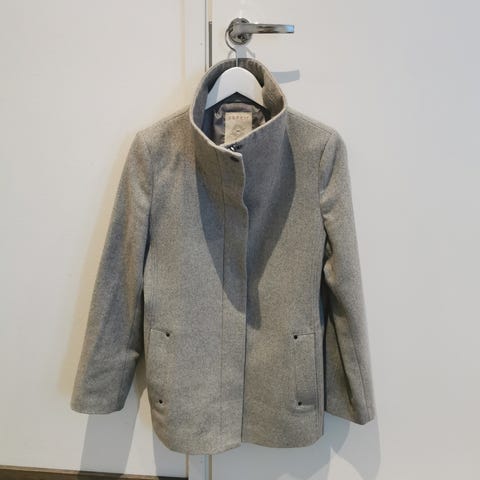 Hyväkuntoinen Espritin villakangastakki (50% villaa) kokoa XS. Edessä vetoketju ja taskut. Sopii hyvin kevät- ja syystakiksi. Savuton ja eläimetön koti.