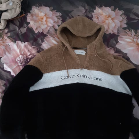Luonnonvalkoinen / valkoinen Calvin Klein huppari.
