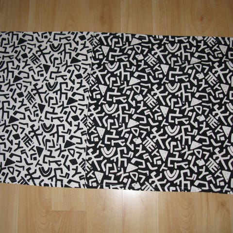n. 54x128cm, jotain jälkee. Reunat ommeltu eri värisellä langalla. Jämsä