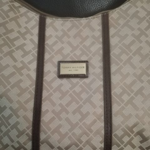 Tummansininen Tommy Hilfiger -käsilaukku. Sisällä kaksi avotaskua, yksi vetoketjullinen tasku ja korttitaskuja.
